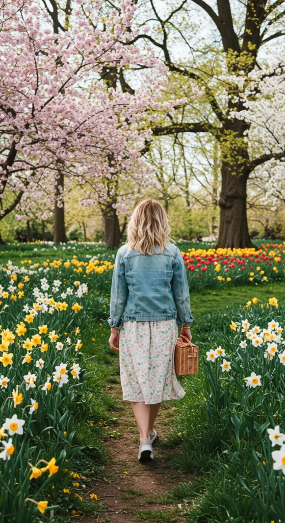 Spring calls for easy layers, and a denim jacket is the perfect outerwear choice. Pair it with floral dresses, lightweight trousers, or midi skirts. This gives you warmth without feeling heavy.