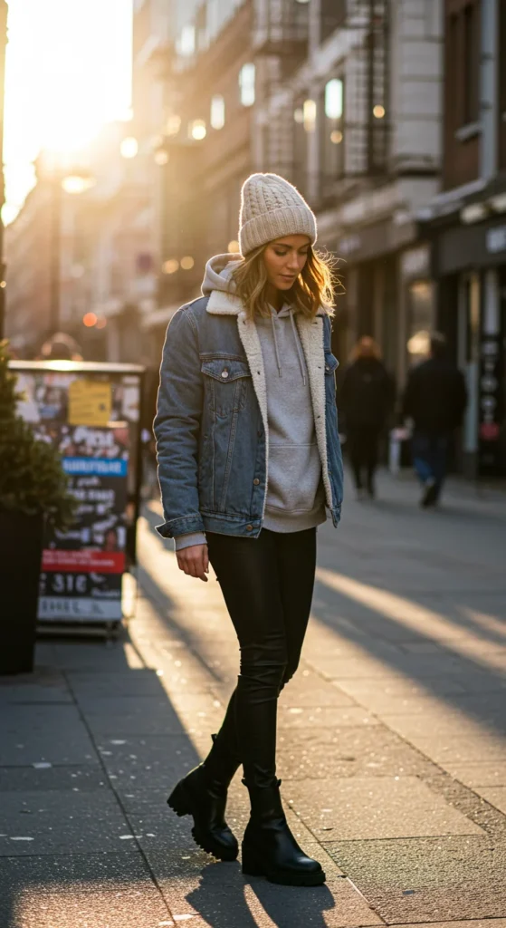Fall is the season to get creative with layers. Pair your denim jacket with chunky knits, plaid scarves, or even a hoodie underneath. The mix of textures makes your outfit look intentional and cozy.