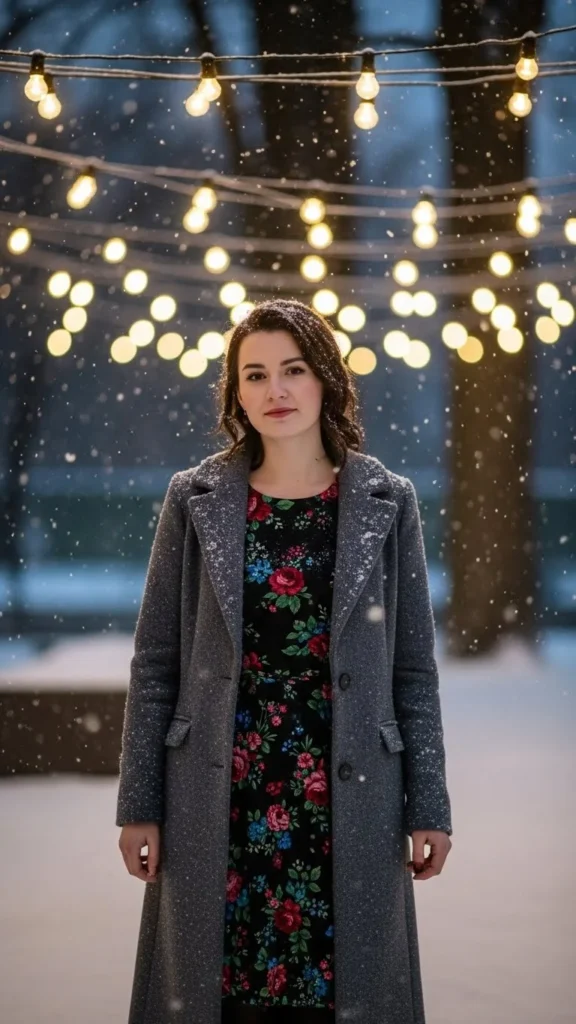Florals for winter? Absolutely. Dark florals feel elegant and season-appropriate when combined with warm layers and richer fabrics.