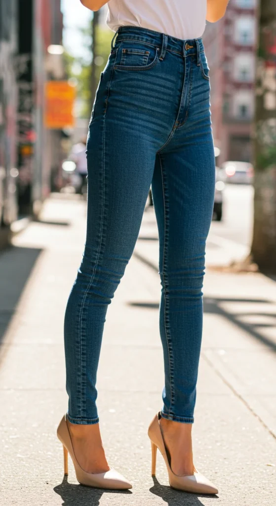 - Skinny high-waisted jeans: Perfect for highlighting curves and pairing with oversized tops.