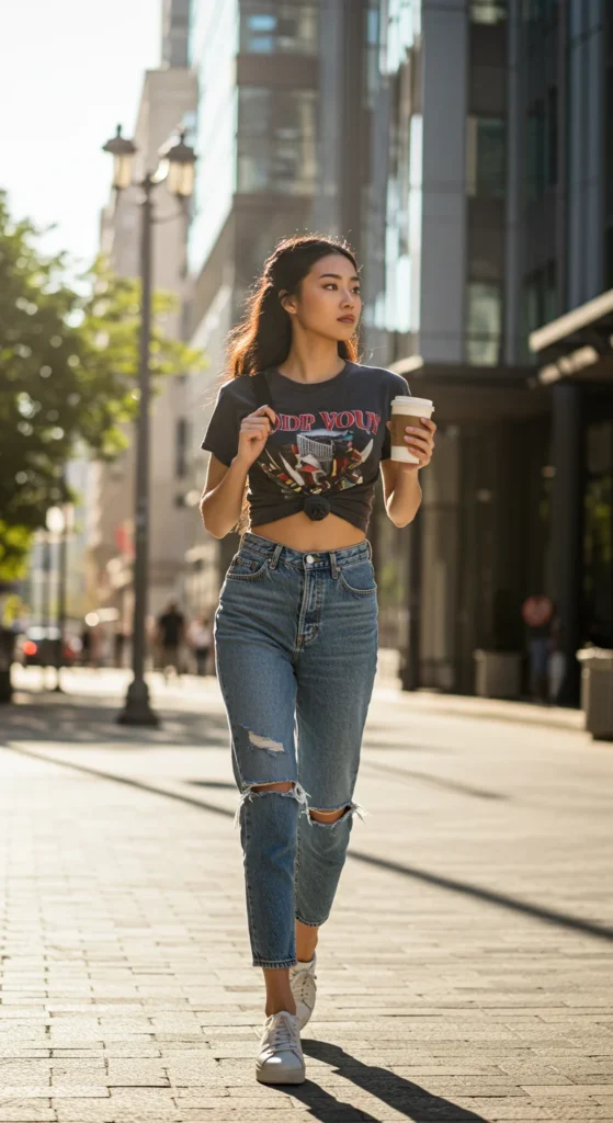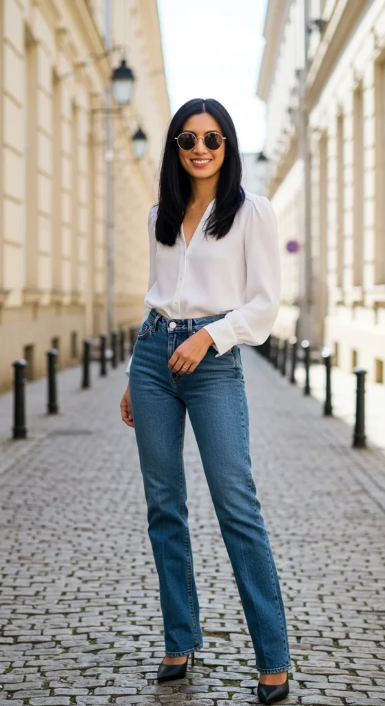 - Straight-leg or mom jeans: Great for a relaxed, vintage-inspired look.
