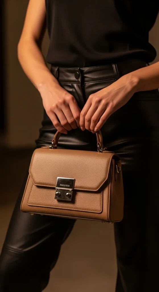 - Leather pants with neutral tones