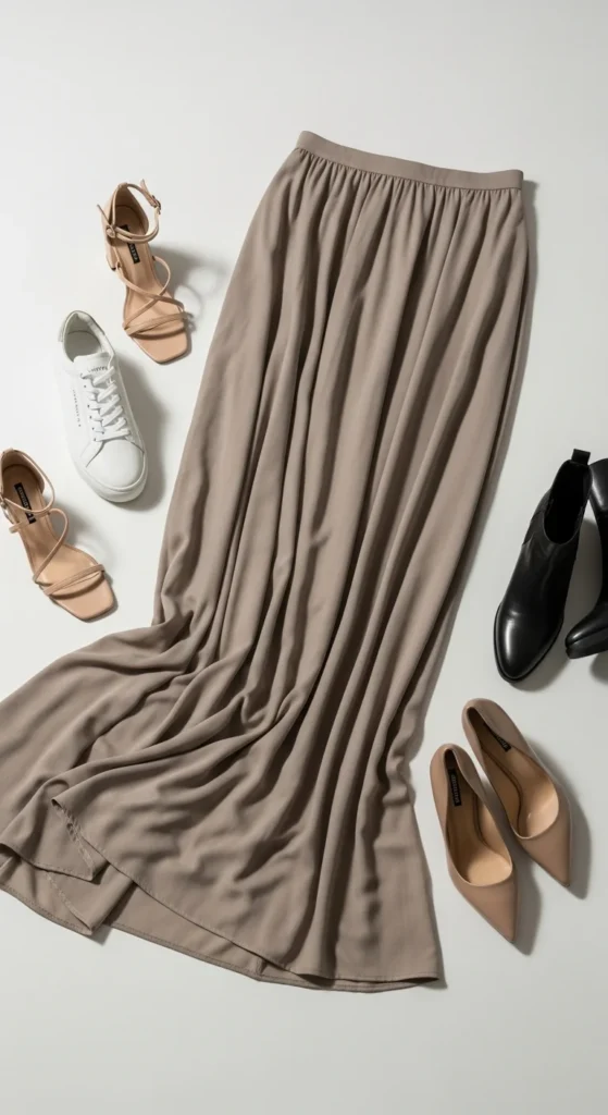 Shoes can make or break a maxi skirt outfit. Because the skirt covers most of your legs, your footwear sets the entire mood.
