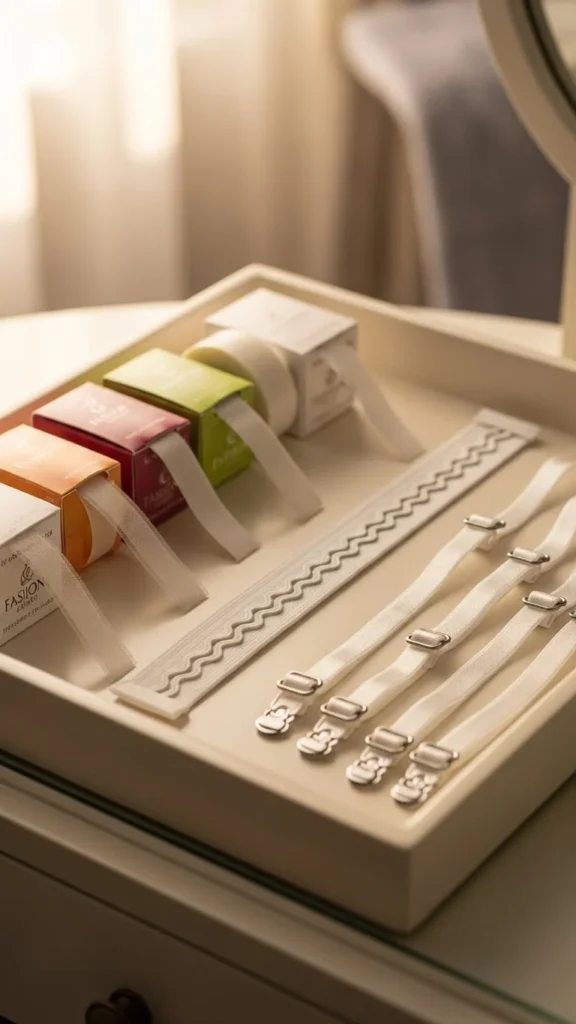 - Fashion tape: A sticky, skin-safe adhesive that holds the neckline in place.