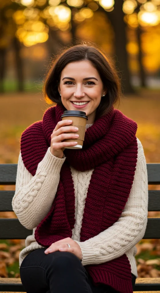 No infinity scarf? No problem. Take a long scarf, tie the ends together, and double-loop it around your neck. It creates instant volume and warmth.