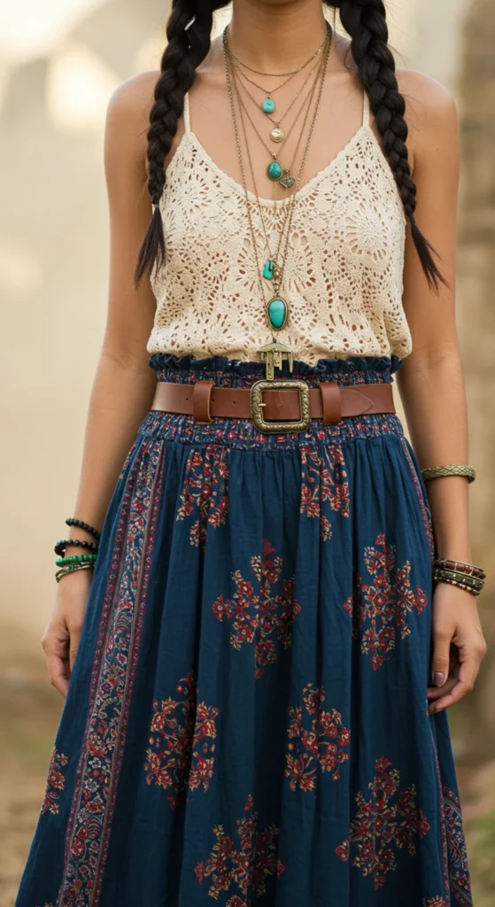 - Low on the hips: Creates a boho, laid-back vibe (especially with maxi skirts or flowy dresses).