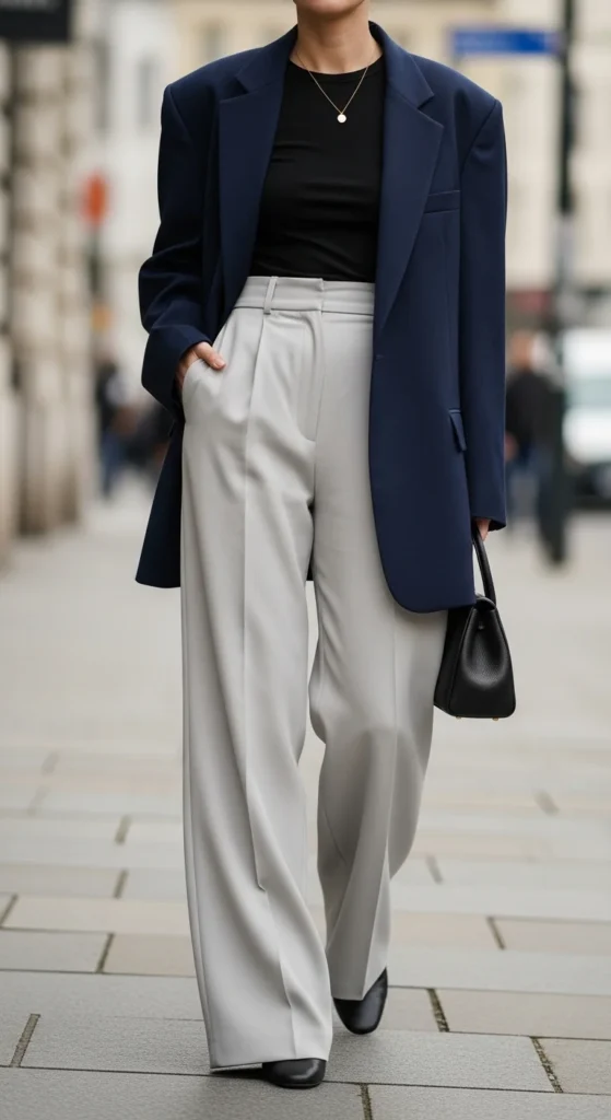 Play with Proportions (Wide-Leg + Blazer = Balanced)