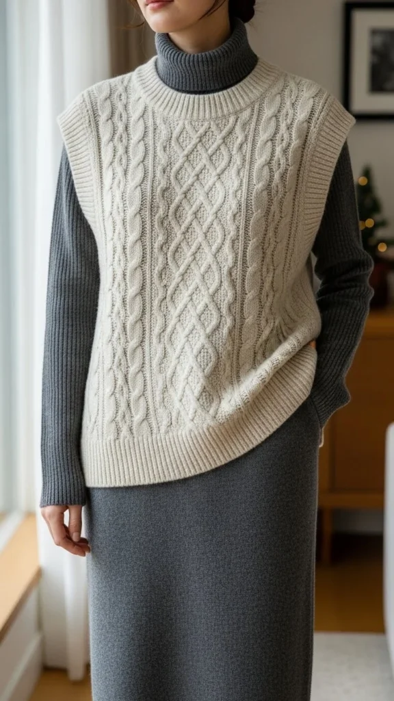 2. Chunky Sweater Vest With a Turtleneck