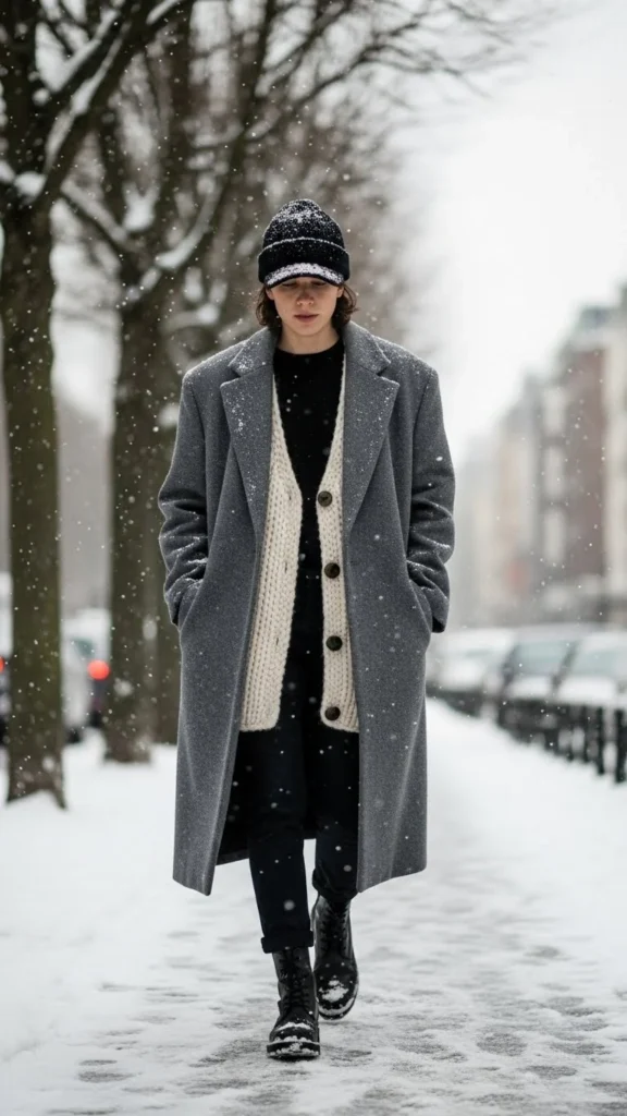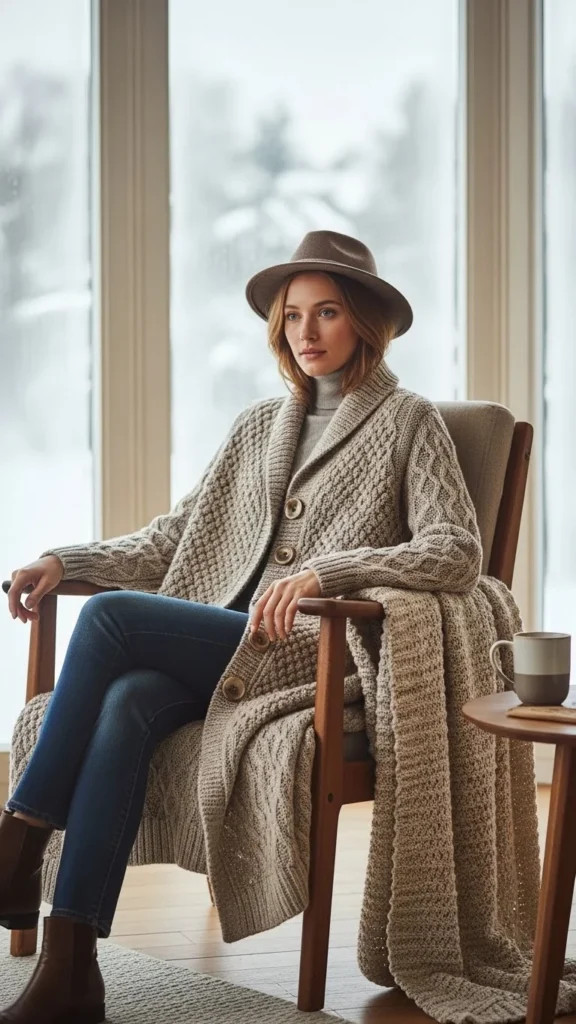 A coatigan feels softer than a structured coat. Pair it with a fitted vest and base layer. Add jeans or trousers. Boots keep the outfit grounded. This pairing works for relaxed winter days. Coatigans are affordable and easy to layer. The combination adds calm texture while staying warm.