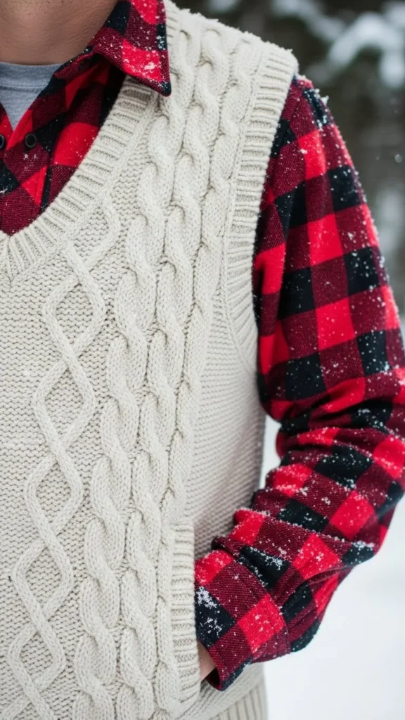 6. Sweater Vest + Flannel Shirt Layer