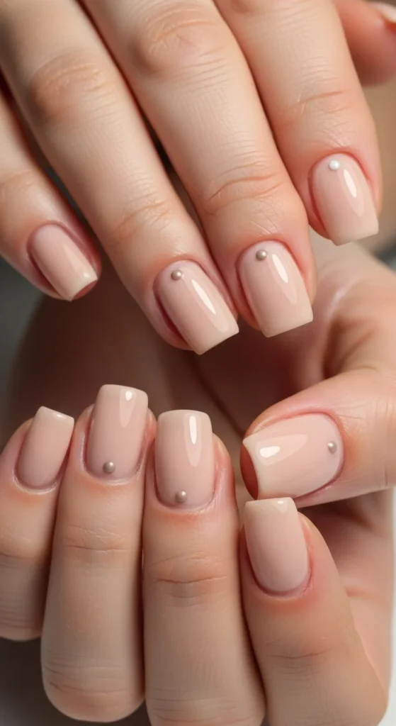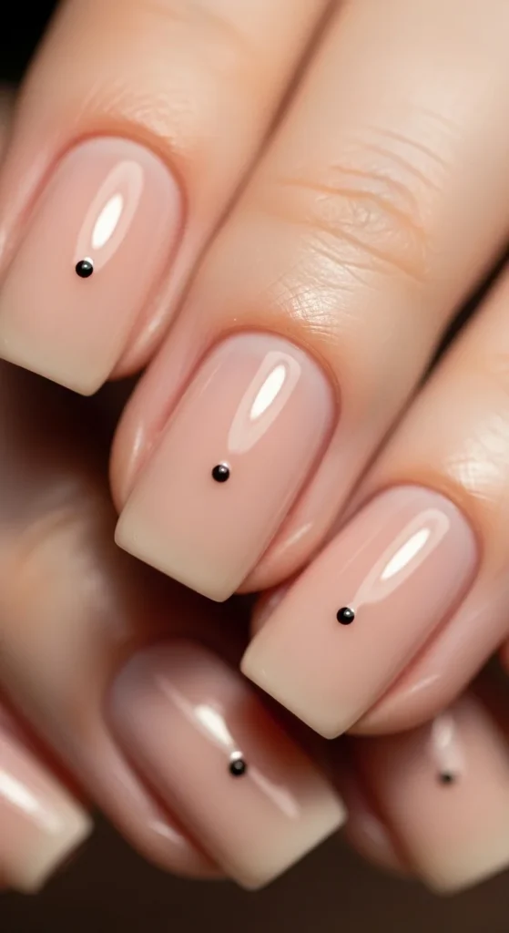A single dot adds interest without clutter. Use nude polish as the base. Add one small dot near the cuticle or center.
