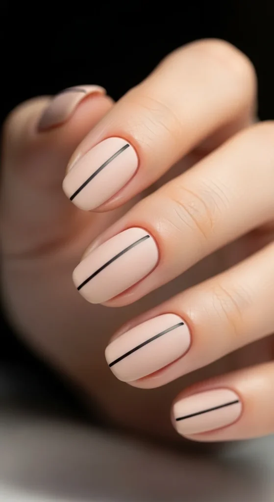 Add one thin vertical line down the center of each nail or just one accent nail. Use white, beige, or soft gray.