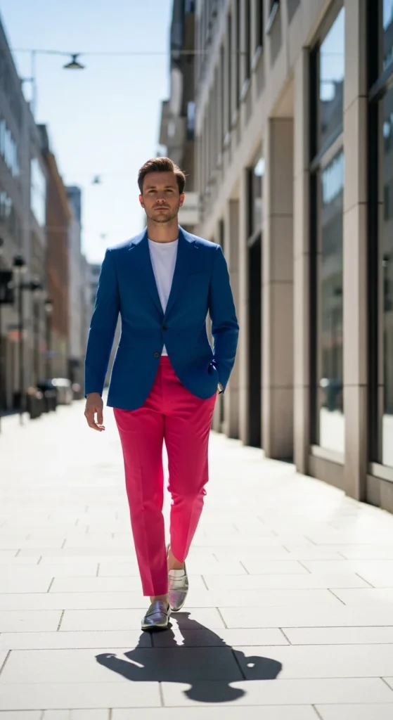 1. Cobalt-Blazer With Hot-Pink Trousers