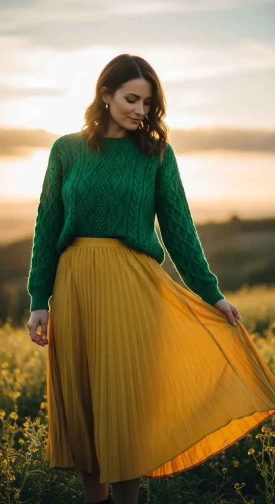 2. Emerald Sweater With Sunshine-Yellow Skirt