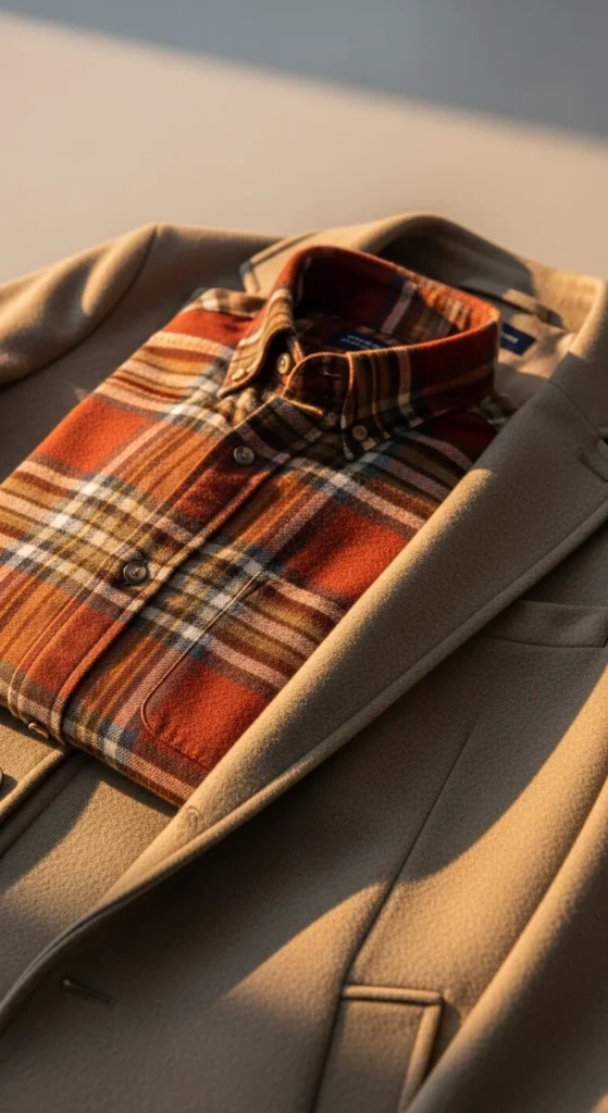 A soft flannel shirt feels relaxed while a neutral coat adds polish. Stick to muted flannel patterns like grey, beige, or navy. Add jeans or straight trousers. For a budget idea, repurpose an old flannel by removing worn buttons and replacing them with new ones. Pair with boots or clean sneakers. Add light accessories to keep the outfit tidy.