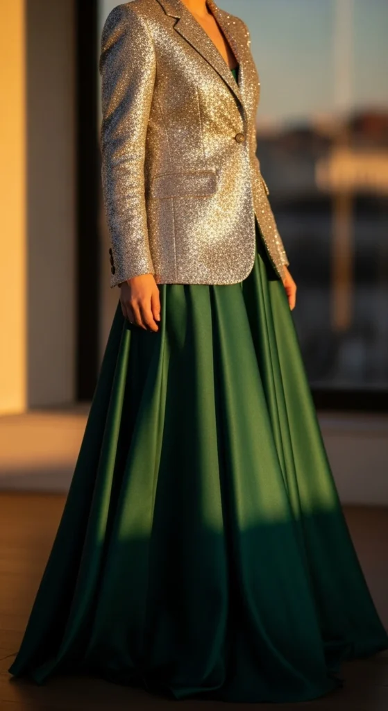 12. Glitter Blazer With a Satin Maxi Skirt
