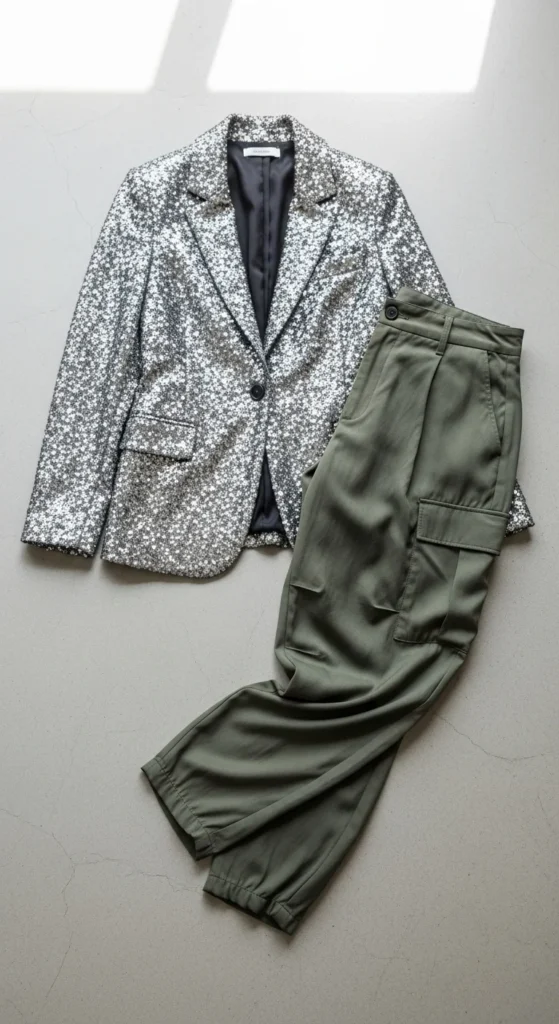 13. Glitter Blazer With Cargo Pants