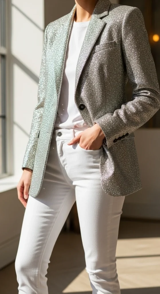 21. Glitter Blazer With White Jeans