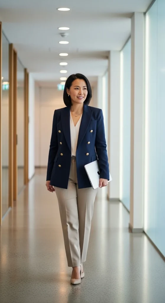 Before building outfits, your blazer choice sets the tone. Modern office style favors structured but not stiff.