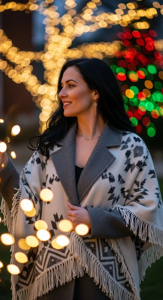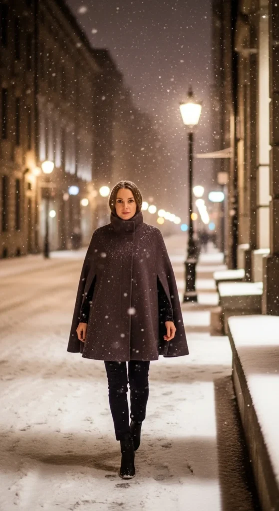 A poncho is a great layering piece. It fits over sweaters and keeps your upper body warm. It also gives you space to move easily. Choose thick fabric like wool or heavy knit for winter use.