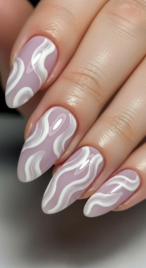 Brushstroke nails feel artistic yet wearable. Apply lavender base, then use a small brush to create abstract strokes. Top coat seals design. Medium-length nails work best. DIY: practice strokes on paper or palette first. Minimalist and elegant, suitable for casual or office settings. Adds personality without overdoing it.