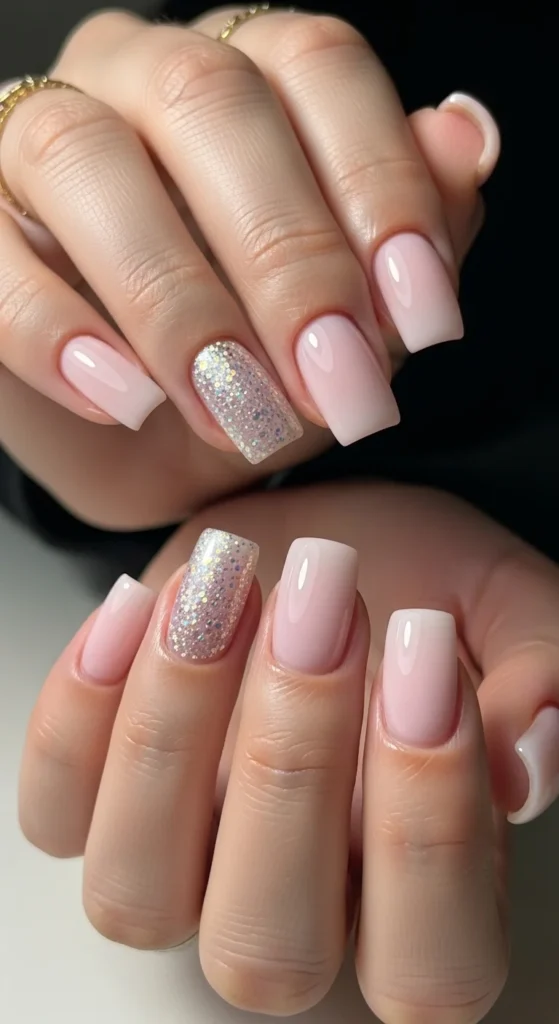 Milky nails are soft and high-end looking. Paint nails with thin milky pink layers. Add light glitter on one accent nail. Works on short or medium nails. DIY-friendly: layer polish gradually. Elegant enough for office, subtle enough for everyday wear. A small accent makes it playful but not busy.
