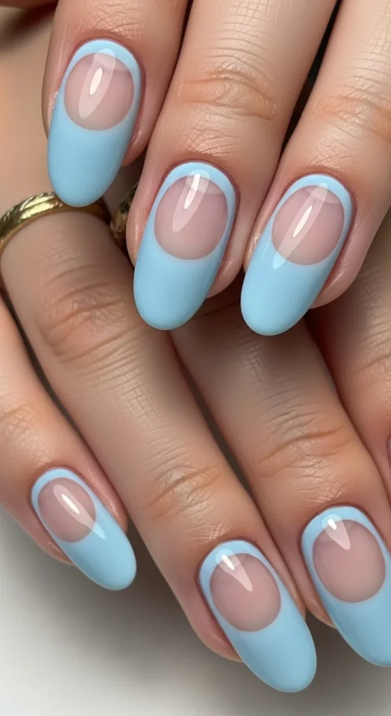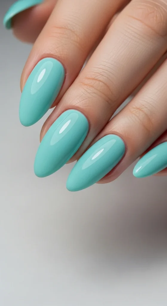 Glazed pastels enhance softness. Paint nails pastel blue, add glossy top coat for smooth finish. Works on almond or medium nails. DIY-friendly with basic polish and top coat. Gloss adds sophistication without extra design. Perfect for everyday wear or casual events. Subtle shine keeps nails polished and approachable.