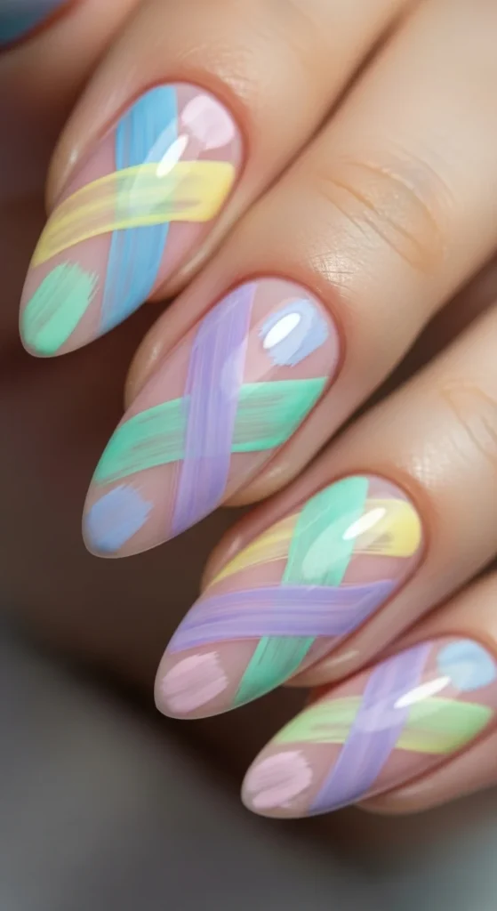 Brushstroke ombre feels artistic. Paint base, add strokes with small brush in complementary pastels. Medium nails work best. DIY-friendly: practice on palette first. Top coat protects design. Perfect for casual spring wear or social media photos. Adds playful creativity without being overwhelming.