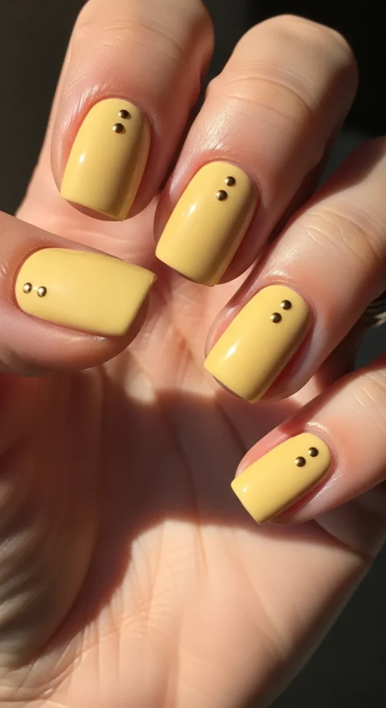Butter yellow is the 2026 standout pastel. Paint all nails in soft yellow. Use a toothpick to add tiny gold dots near the base for minimal flair. Short nails are perfect for this style. Top with a clear coat to prevent chipping. Budget tip: inexpensive pastel polish works fine. This manicure is great for spring outings or office-friendly looks. Minimalist designs keep nails modern and wearable.