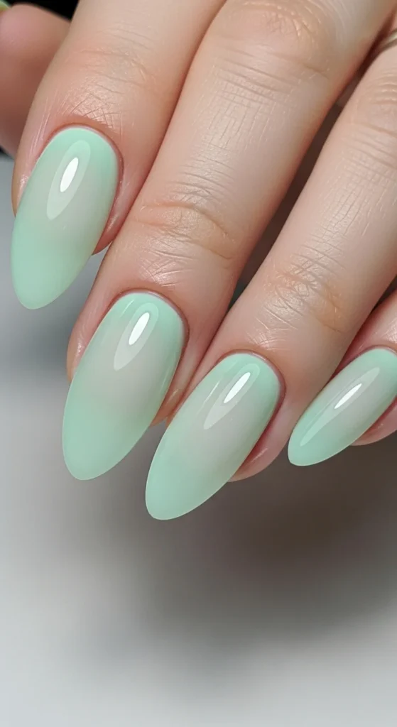 Sheer pastel nails feel soft and luxurious. Apply a mint green polish in thin layers for transparency. Milky top coats enhance the soft look. Works well on short or almond nails. Easy DIY: layer polish gradually for desired opacity. This finish is understated yet stylish, suitable for both everyday wear and special occasions. Pair with delicate rings for a polished effect.