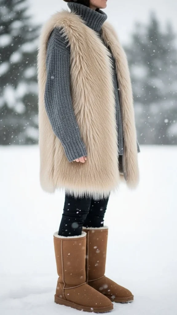 8. Shearling Boots + Faux-Fur Vest + Knit Basics