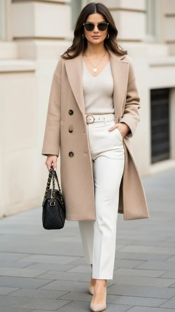 Neutral accessories change simple outfits easily. Bags and belts add polish.