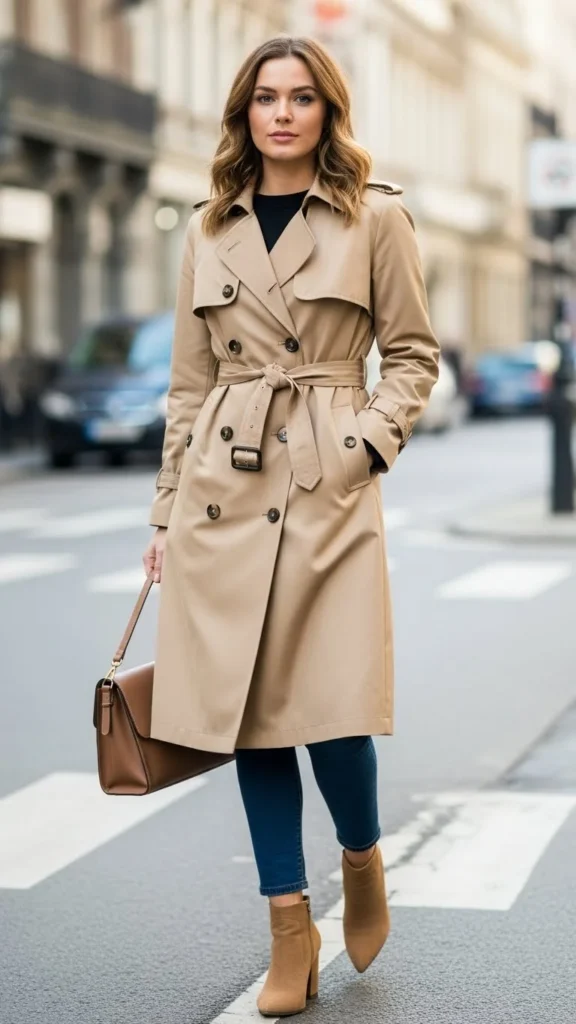 A lightweight trench adds polish to casual layers. Wear it open for ease.