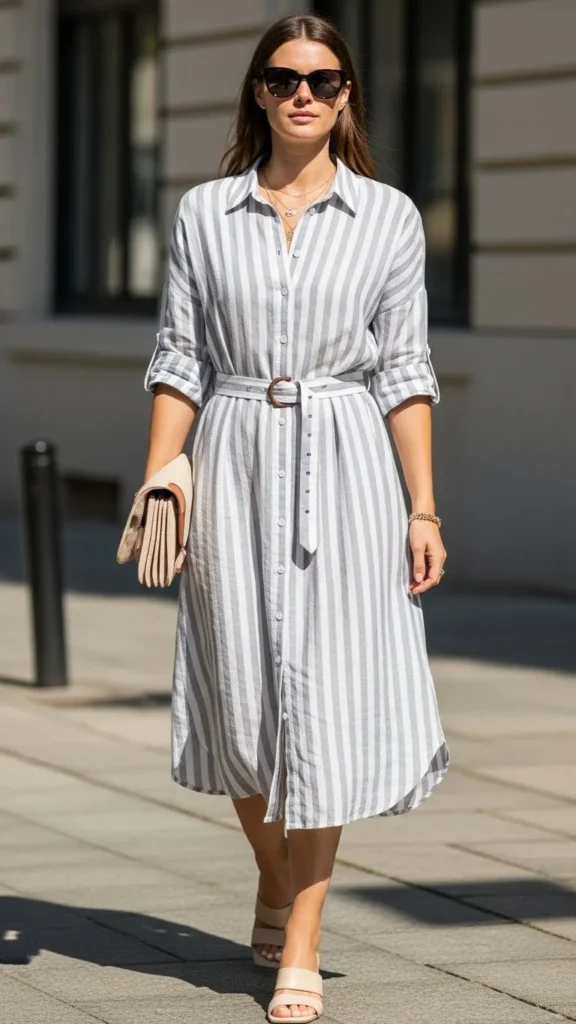 A linen shirt dress feels polished while staying comfortable. Add a belt for shape or wear it loose for ease. Neutral shades allow repeat wear.