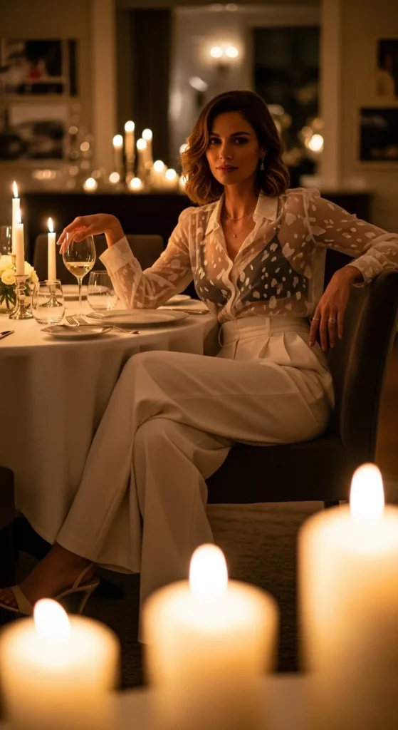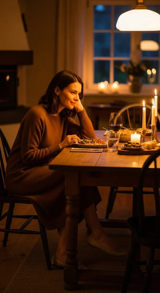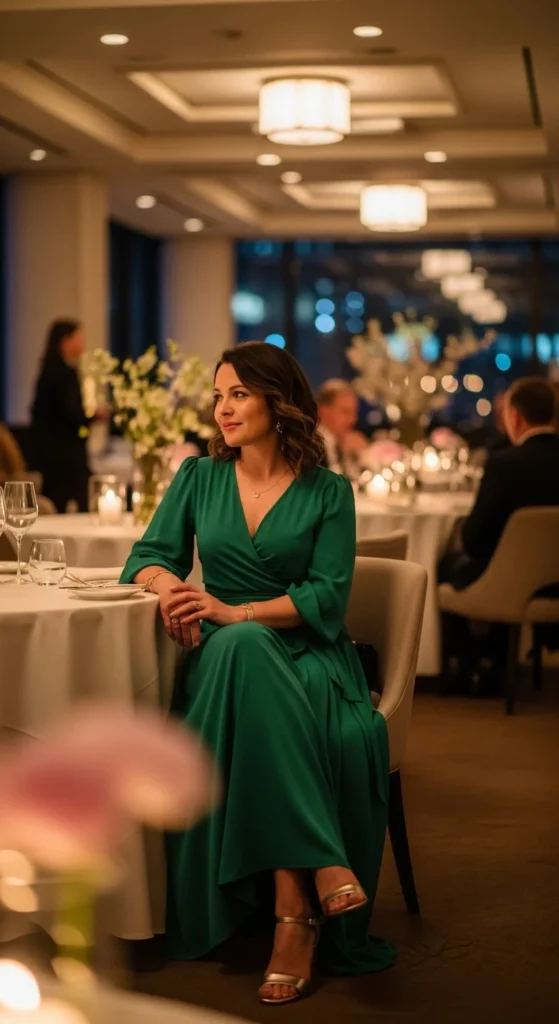A wrap dress flatters naturally by defining the waist and allowing easy movement. Lightweight fabrics feel comfortable during long dinners. Soft solids or subtle prints keep the look balanced.
