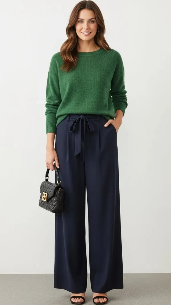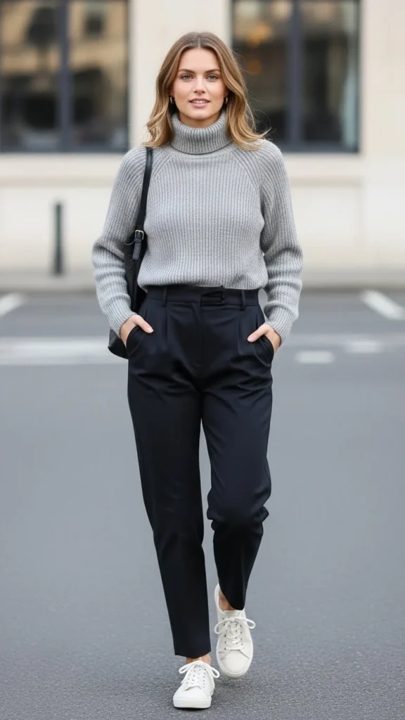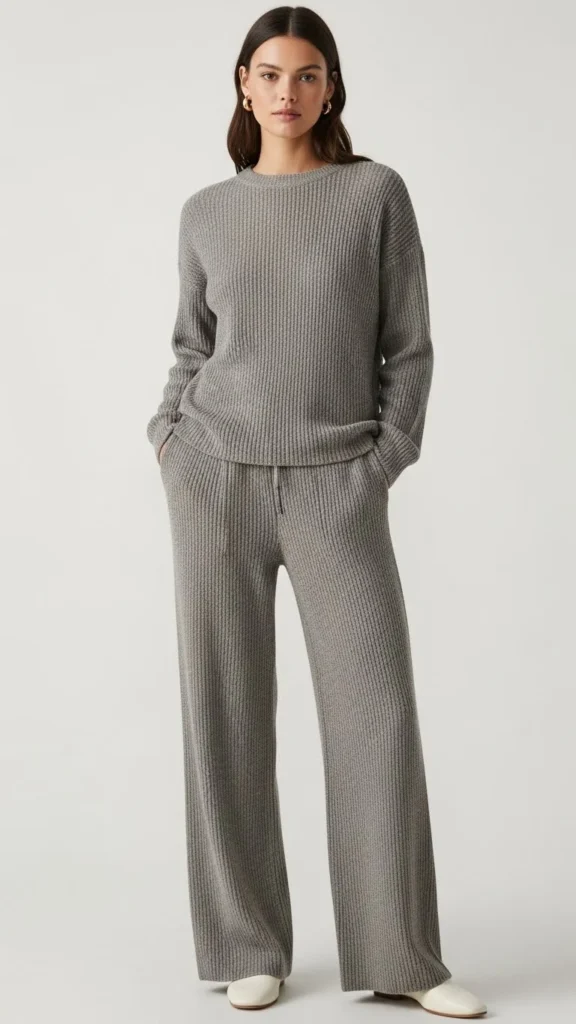 A lightweight knit worn with pull-on trousers feels relaxed yet tidy. Elastic waistbands add comfort without drawing attention. Neutral shades make the outfit easy to repeat.