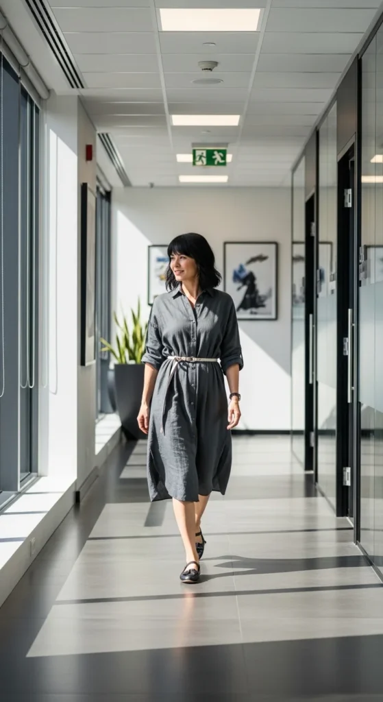 Shirt dresses feel practical and professional. Choose breathable fabrics.