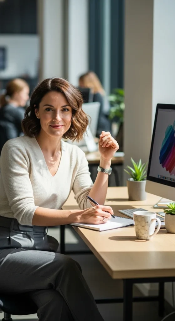 This look suits long desk days and meetings alike. Minimal accessories keep it professional.