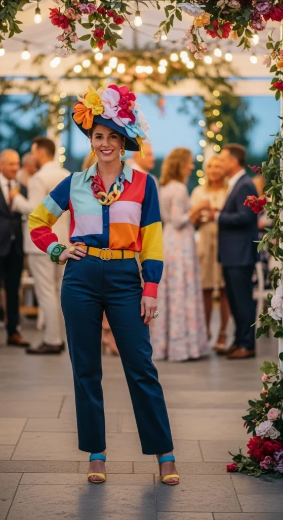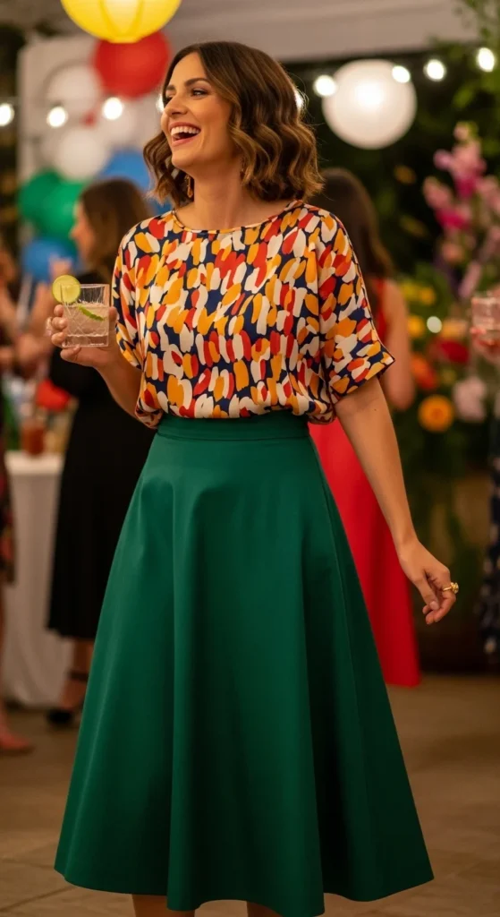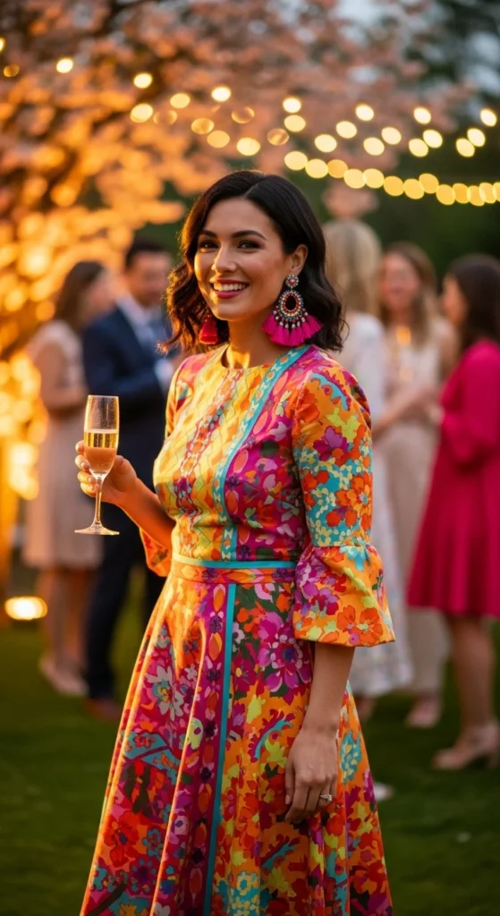 A colorful midi dress brings instant energy to a party setting. Choose flowing fabrics that move easily as you walk and sit. Bright shades or playful prints create impact without complicated styling.