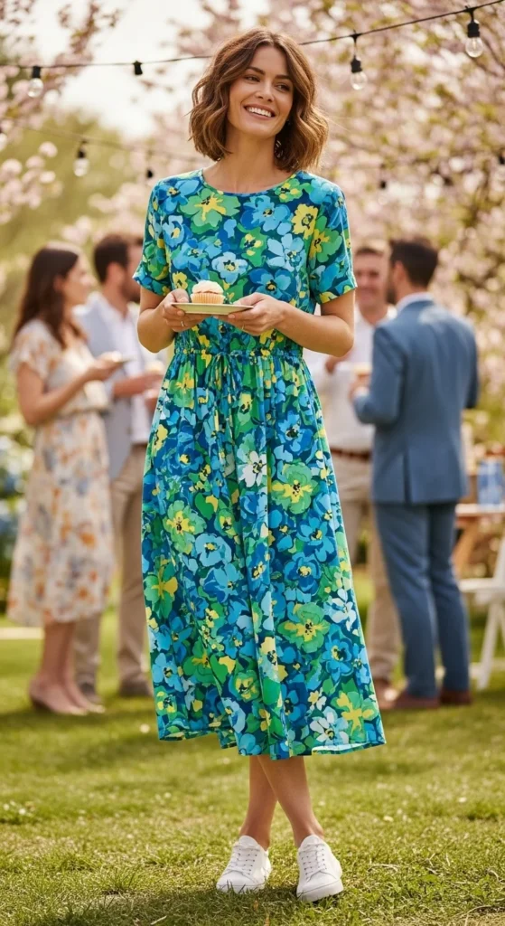 Floral minis suit spring celebrations perfectly. Choose relaxed fits that allow movement. Low heels keep the outfit practical.