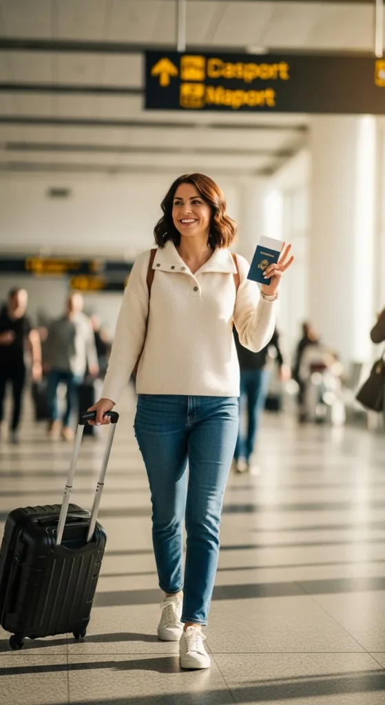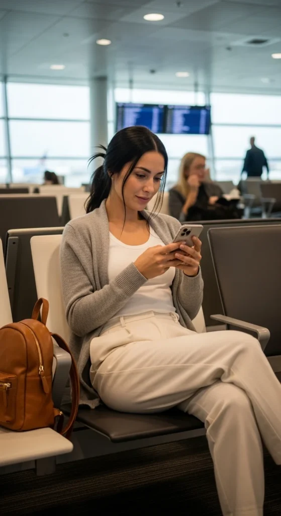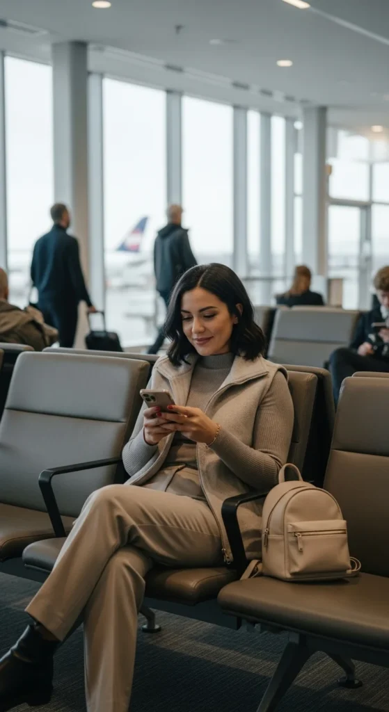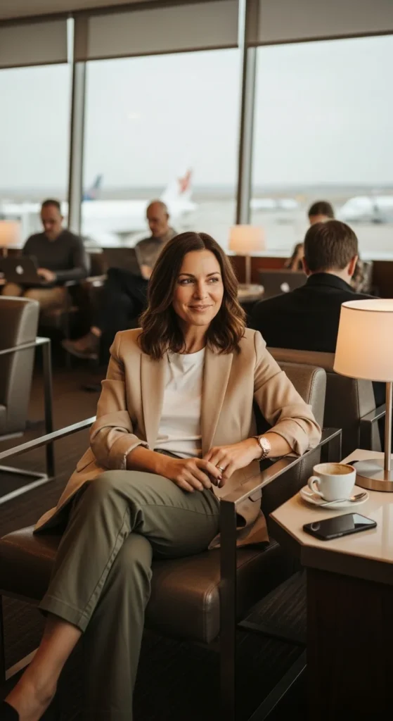 This outfit fits flights, train rides, and casual arrivals without feeling stiff or sloppy.