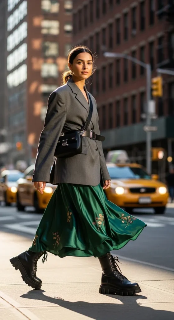 Street style combat boots aren’t about looking aggressive—they’re about creating visual tension. Pair chunky lug soles with soft fabrics. Mix oversized layers with sharp tailoring. Let hardware speak, but balance it with clean silhouettes.