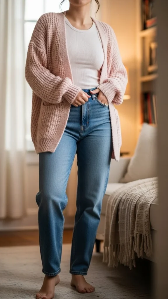 A cardigan adds warmth without bulk. Layer it over a fitted tank and jeans for balance. Leave the cardigan open for a relaxed feel. Budget tip: neutral cardigans mix with many outfits and get plenty of wear.