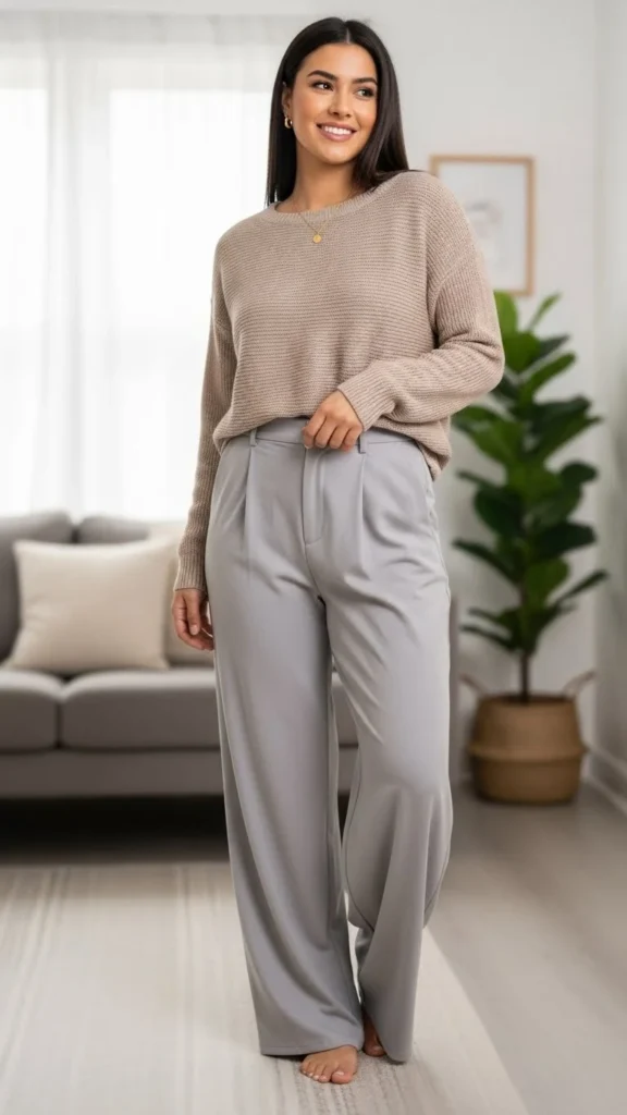 Loose trousers feel comfortable yet put together. Pair with flats or trainers. Budget tip: elastic-waist trousers are often overlooked gems.