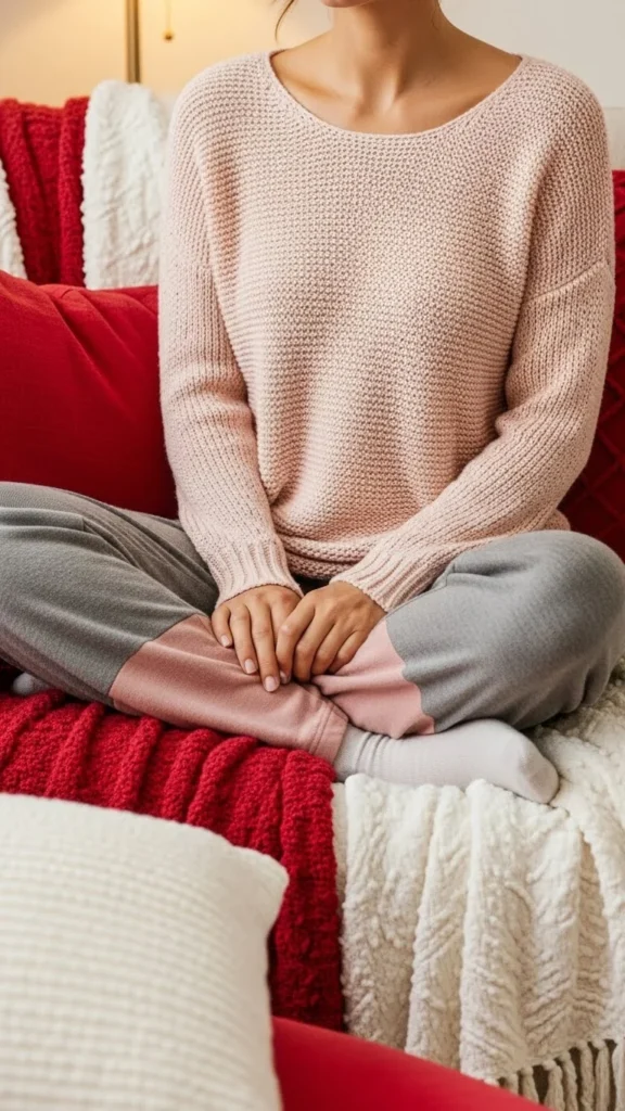 [Image Prompt: Write a prompt to describe a photograph about: {{ 22 Cozy Valentine Outfits That Feel Warm & Lovable }} in the context of Knit Lounge Set in Soft Pink. Matching knit lounge set in soft pink tones, cozy home setting. No text or words in the image.]