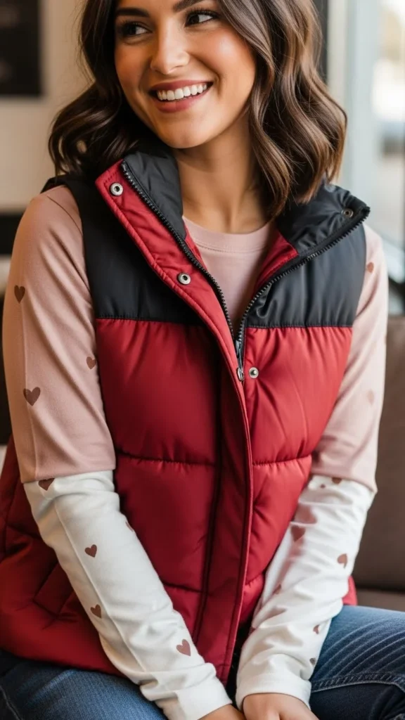 Vests keep warmth focused. Soft colors feel welcoming. Budget tip: lightweight puffers are often discounted.