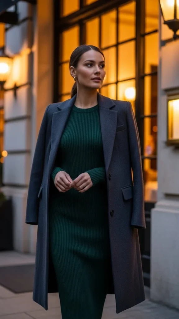 A knit dress feels cozy while a structured coat adds polish. Budget tip: classic coats last many seasons.