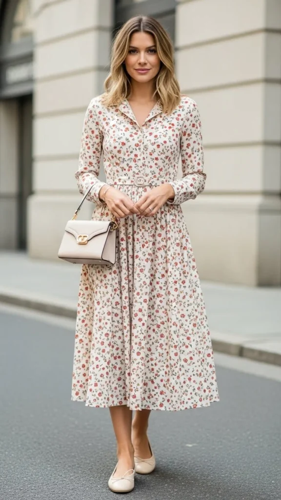 A midi dress with ballet flats feels timeless and comfortable. Choose a dress with clean lines and a solid color. Flats keep it practical for walking and long evenings.