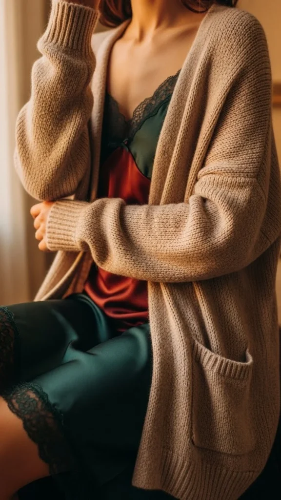 11. Cozy Cardigan Over Slip Dress