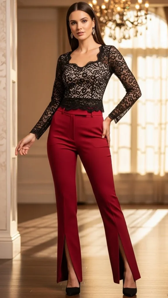 12. Tailored Pants and Lace Top